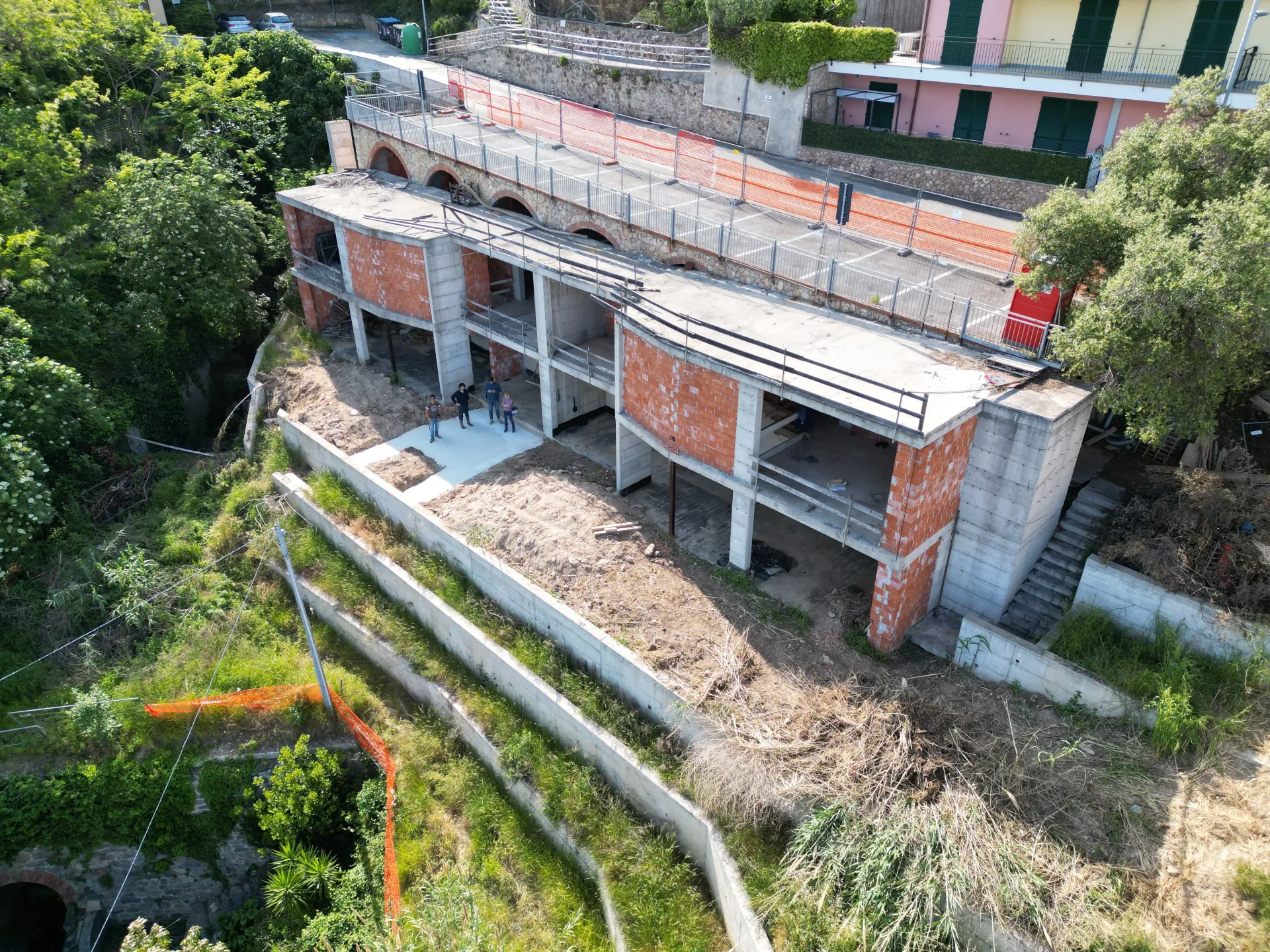 La particolarità del luogo, la morfologia del terreno, le caratteristiche paesaggistiche ed ambientali hanno caratterizzato le scelte effettuate per questa villa residenziale, situata nella zona collinare di Bergeggi, in posizione dominante sul Golfo.