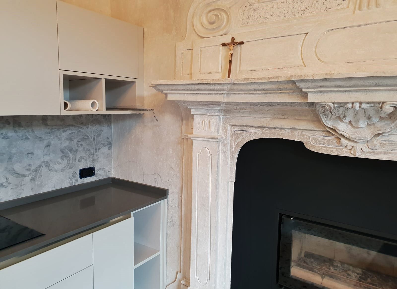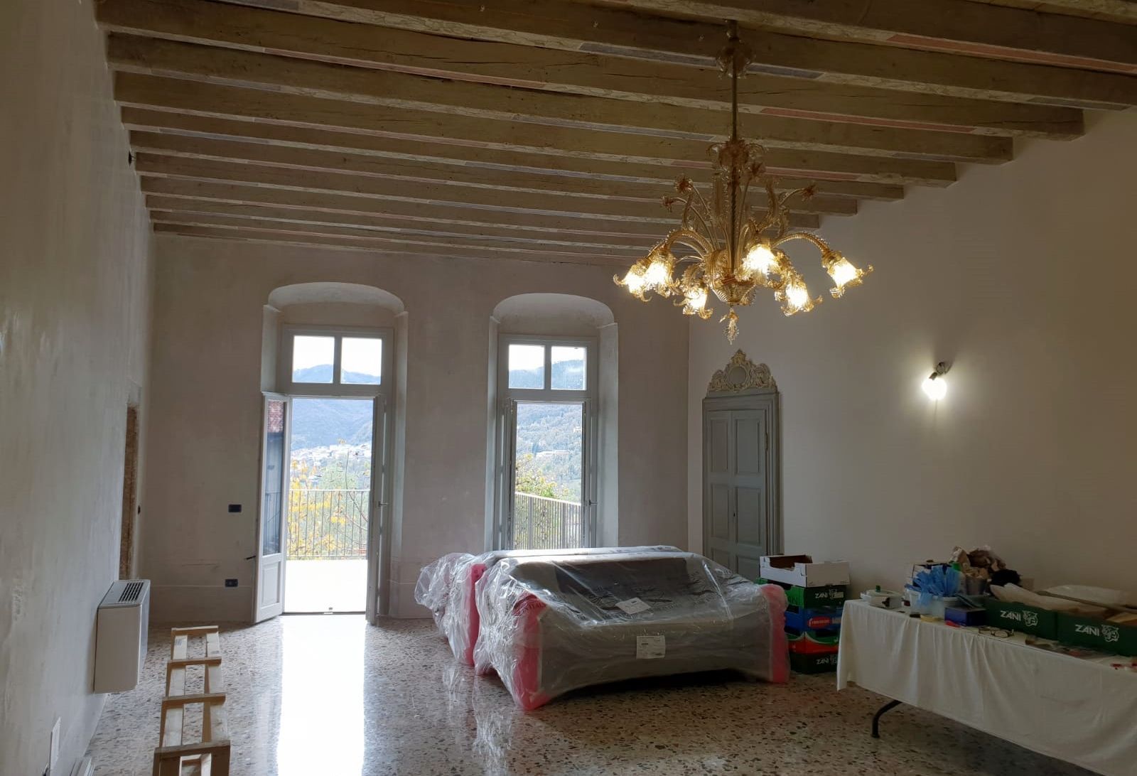 Lo stile veneziano dei grandi camini e del salone ancora ricoperto da parati in marmorino e pavimenti alla palladiana, certificano la presenza di una committenza lagunare quanto mai atipica in Valle.